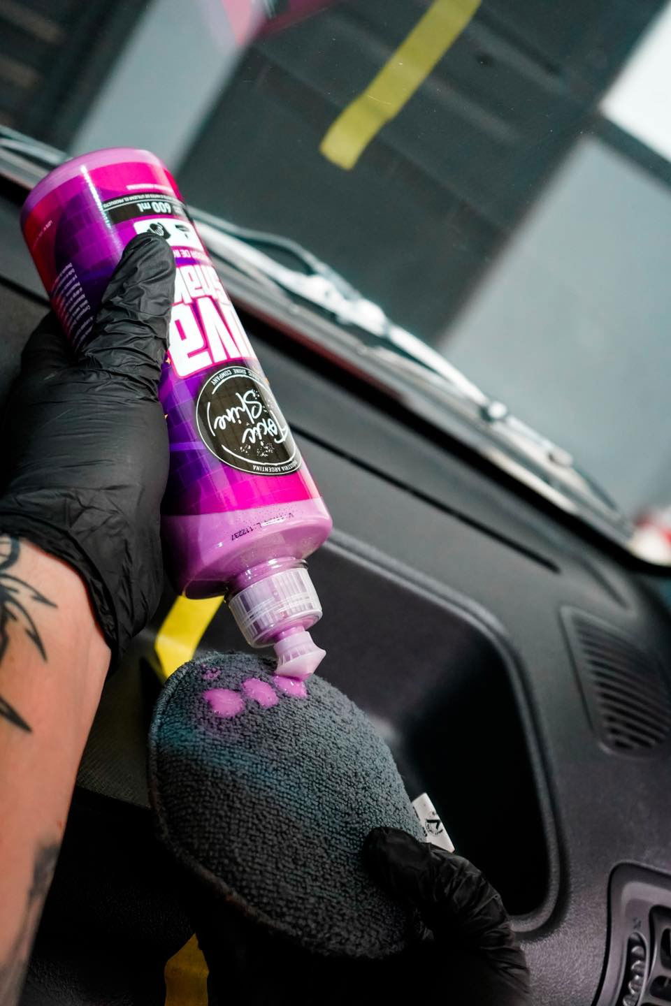 -Aplicar en proporciones reducidas con aplicador de poliespuma o microfibra, frotando suavemente y esparciendo el producto.