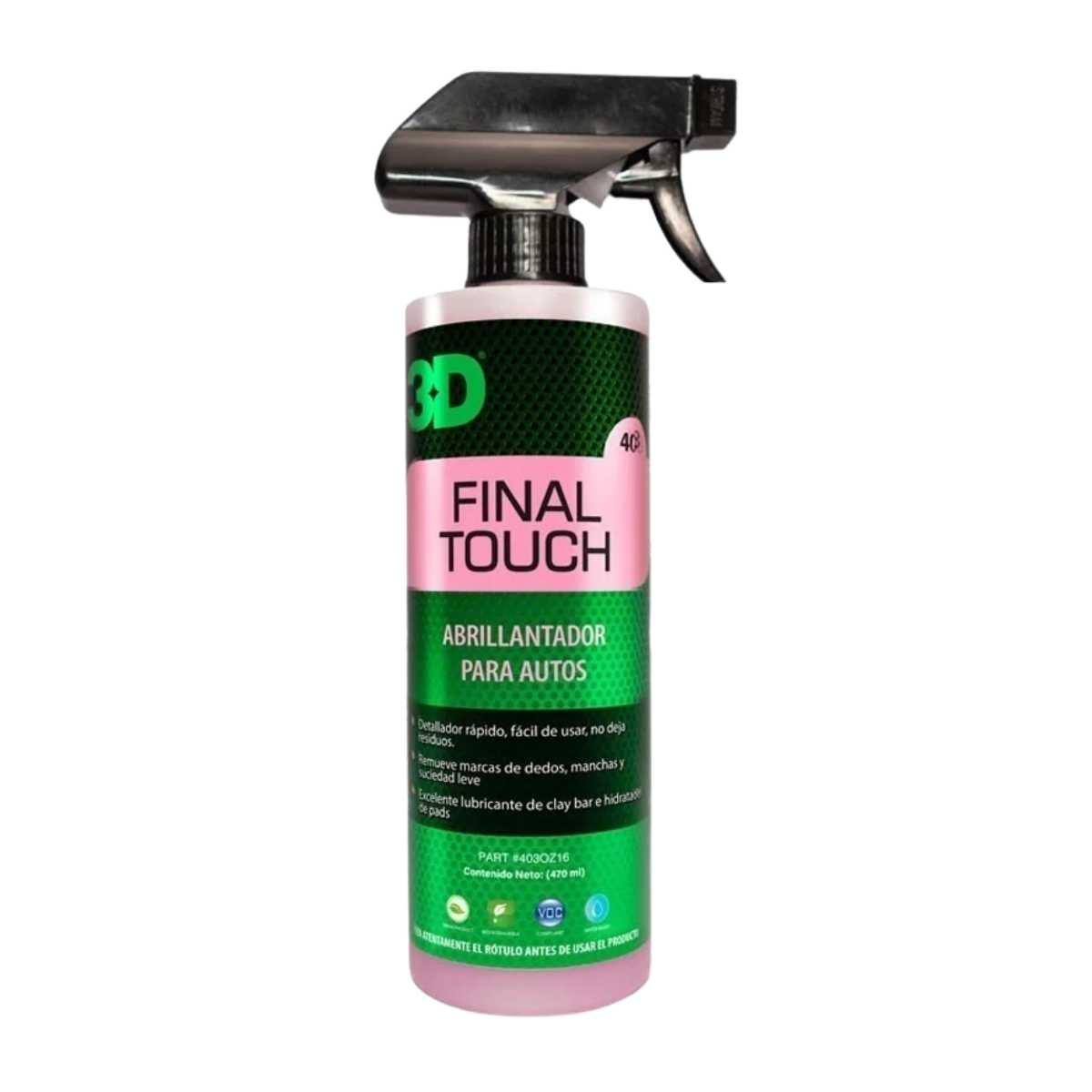 3D FINAL TOUCH es un versรกtil Quick Detailer desarrollado para dejar una terminaciรณn ยซde salรณnยป en todo tipo de vehรญculos.