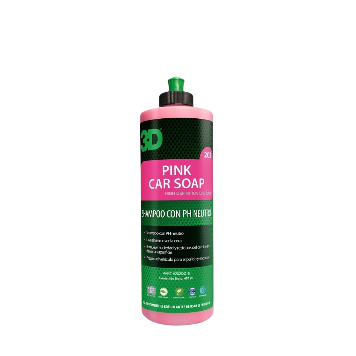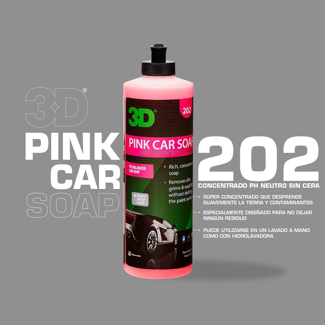 3D PINK CAR SOAP es un shampoo viscoso sรบper concentrado que desprende suavemente la tierra y contaminantes sin daรฑar la pintura de su vehรญculo.