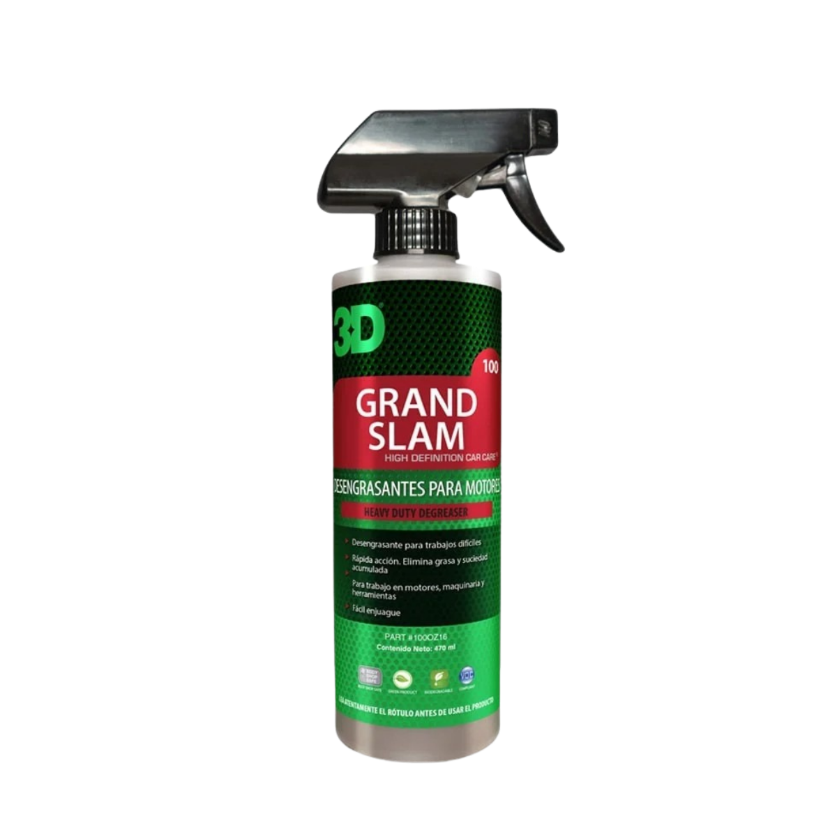 3D GRAND SLAM es nuestro desengrasante mรกs fuerte, diseรฑado para una rรกpida limpieza de motores.