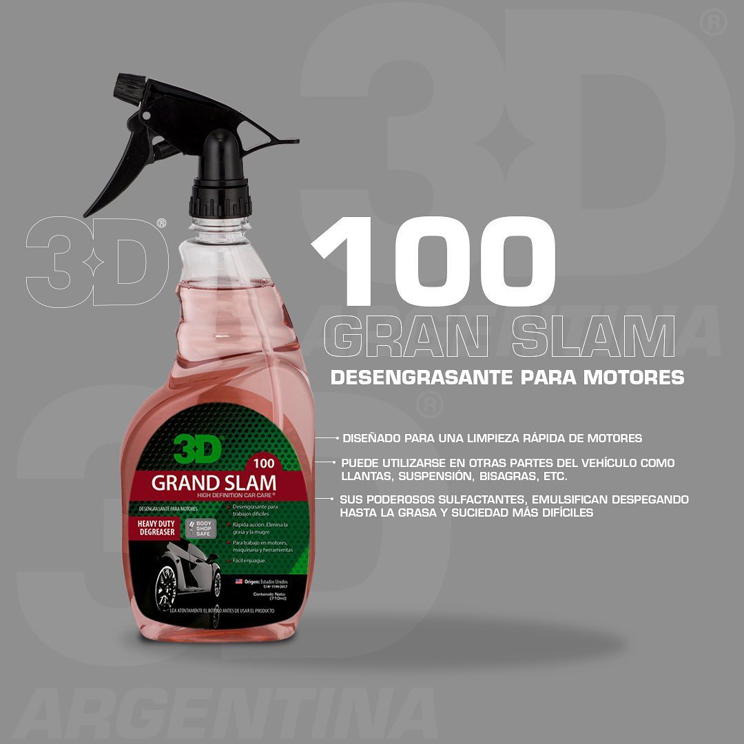 3D GRAND SLAM es nuestro desengrasante mรกs fuerte, diseรฑado para una rรกpida limpieza de motores.