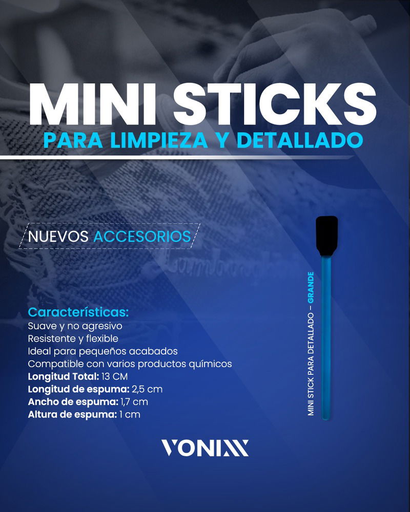 Los mini sticks son unos sticks fabricados con espuma de poliuretano termosellados sobre una varilla rรญgida de plรกstico polipropileno.