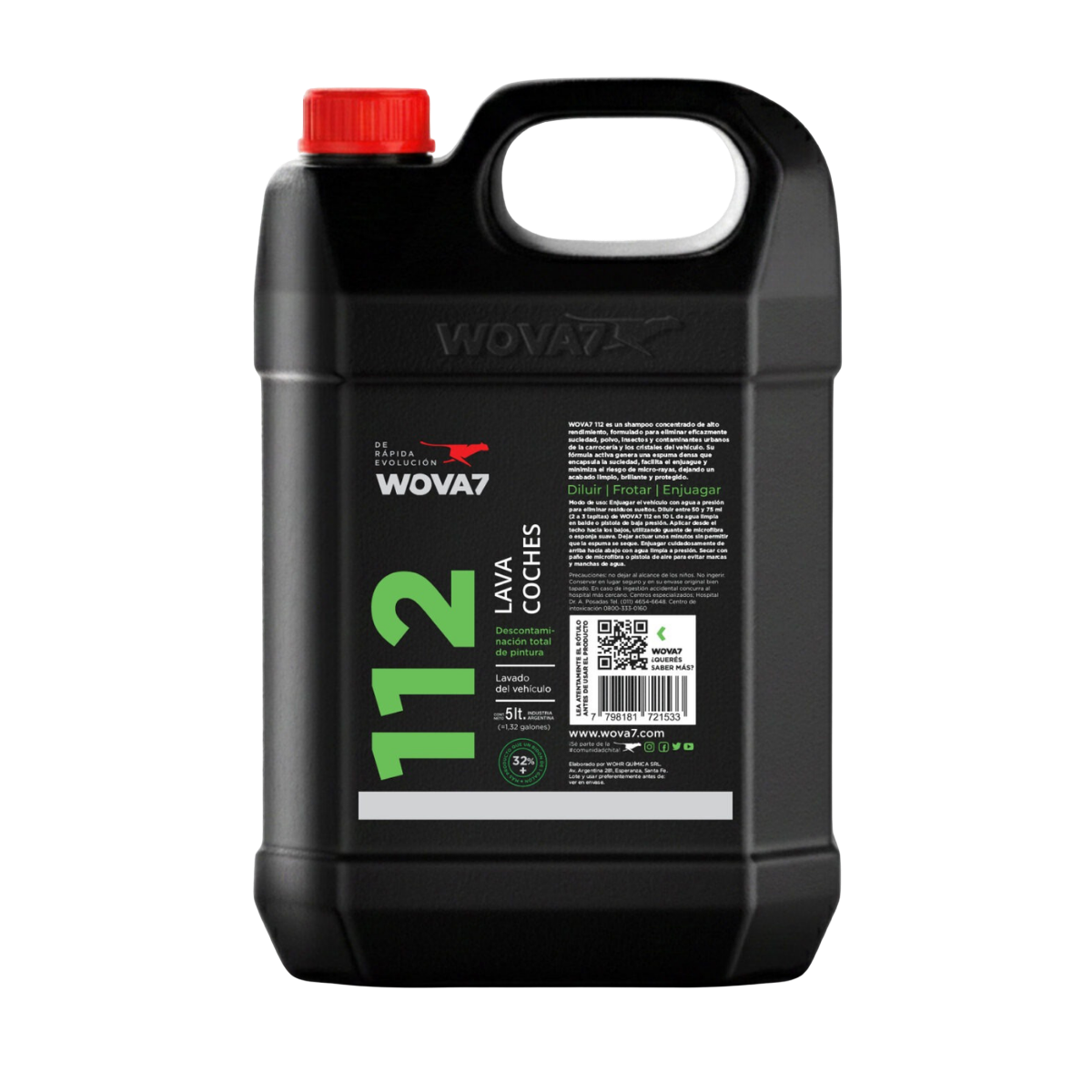 - Disolver LAVA COCHES 112 agregando de 30 a 100 ml por cada 10 litros de agua, segรบn el grado de suciedad.