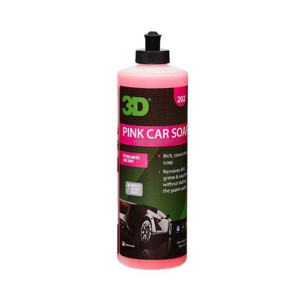 3D PINK CAR SOAP es un shampoo viscoso súper concentrado que desprende suavemente la tierra y contaminantes sin dañar la pintura de su vehículo.
