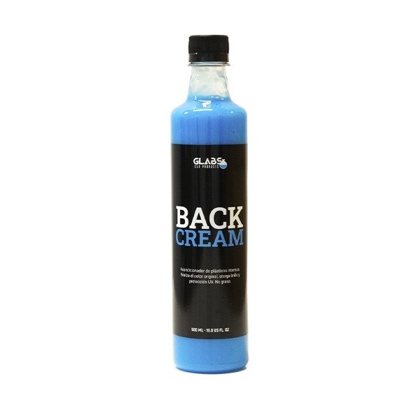 Restaurador de plásticos en crema, realza el color original, otorga brillo y protección UV, aroma a frutilla.
